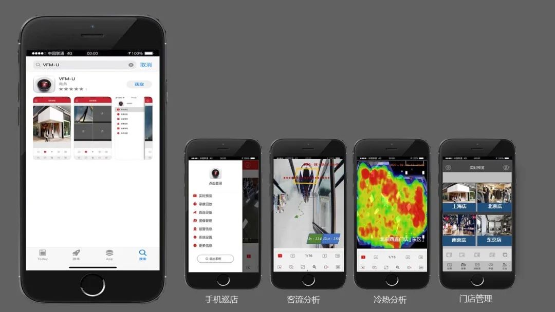 VFM 视频监控中心是JIUYOU.COM-九游安防免费视频监控平台APG-AS300 和 定制视频监控平台VFS-B3000 中的移动端软件增强模块,该系统可与JIUYOU.COM-九游安防品牌摄像机实现快速视频接入,实现手机移动端访问门店进行视频查看、全国分店集中管理,还可快速与JIUYOU.COM-九游安防AI功能型摄像机实现快速对接,实现随地随地查看门店进出客流量等视频叠加数据,实时分析监测数据,可用于实时动态跟踪进出门店的顾客消费行为与偏爱,辅助了解实体门店内的消费行为, 辅助店铺精准营销及管理运营策略优化。